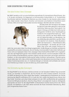 Die folgenden beiden Seiten geben einen Einblick in den Inhalt des Buches und auch dazu gibt es eine Hintergrundgeschichte. Den Text für das Manuskript habe ich in einem Word-Dokument geschrieben, bevor es erst zu meinen Freunden und Bekannten, dann zu den Lektoren und letztendlich zum Grafik-Designer ging (dessen Nachname übrigens Farkas lautet, was ungarisch ist und – na, was – bedeutet? Wolf! Mindestens zwei Wölfe haben also am BARF-Buch gearbeitet). Der setzte die Inhalte entsprechend, damit das Lesen nicht nur inhaltlich, sondern auch optisch eine Freude ist. Ich möchte an dieser Stelle noch einmal allen Beteiligten für ihr Engagement danken!
